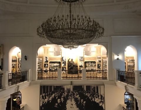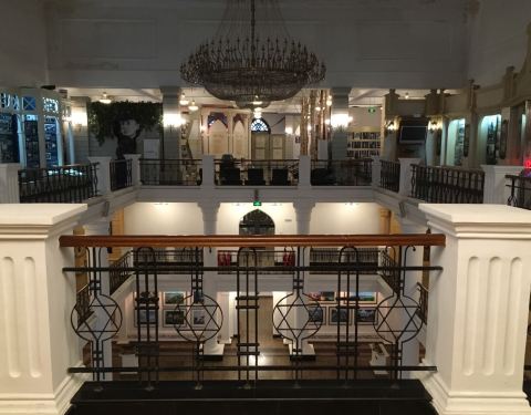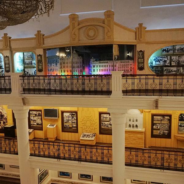 金骆驼 外面地铁施工比较难走,所以建议公交出行,另外对外的售票处里面也没有人,要进去买票。犹太建筑风格这里二十年前是本地最大的娱乐城,后来关闭之后闲置了好久,直到前几年才重新维修,布展,变成现在的样子。建筑方面基本复原了当时的样子,内部装饰还是很新的,装修方面,在很多细节上,楼梯围栏的铁架子,以及...这里二十年前是本地最大的娱乐城,后来关闭之后闲置了好久,直到前几年才重新维修,布展,变成现在的样子。建筑方面基本复原了当时的样子,内部装饰还是很新的,装修方面,在很多细节上,楼梯围栏的铁架子,以及大厅方面有很多犹太标志的细节,每层窗户的拱形玻璃算是唯一能看到岁月痕迹以及旧貌的地方了。