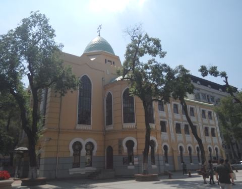 ...以前犹太人活动旧址,一座就是作为展览的犹太新会堂,还有一座是原犹太中学,现在被作为一个音乐学校在中央大街边上一条还算安静的道路上,有两幢黄颜色的建筑,是以前犹太人活动旧址,一座就是作为展览的犹太新会堂,还有一座是原犹太中学,现在被作为一个音乐学校。