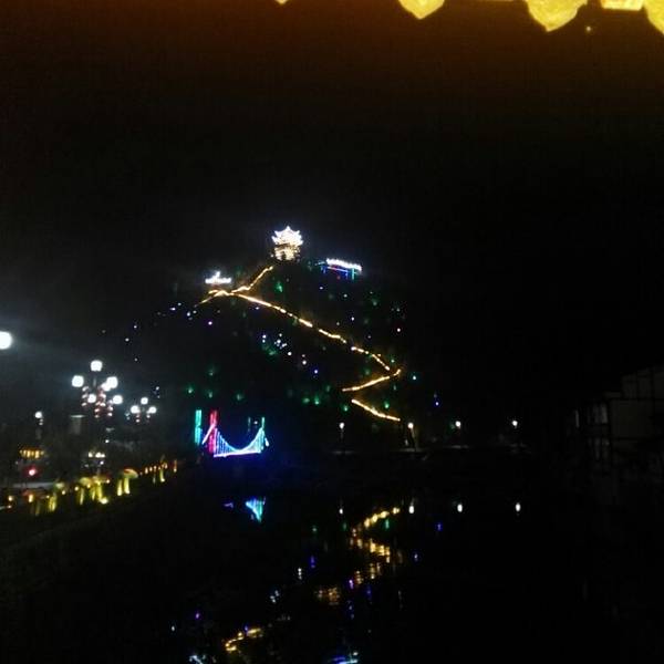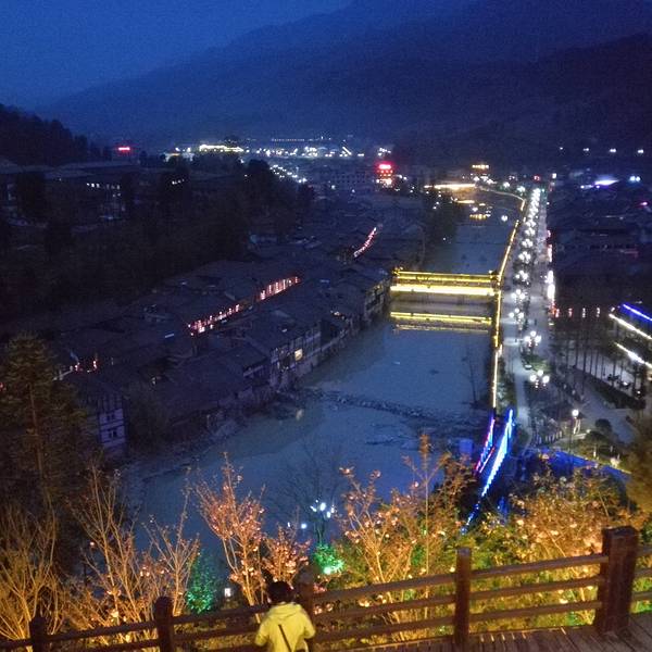 天黑之前我已经把镇子游览完了,吃过晚饭,拿上登山杖登到山上观古镇夜景。
