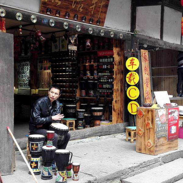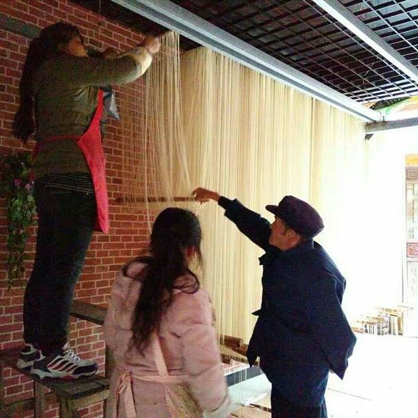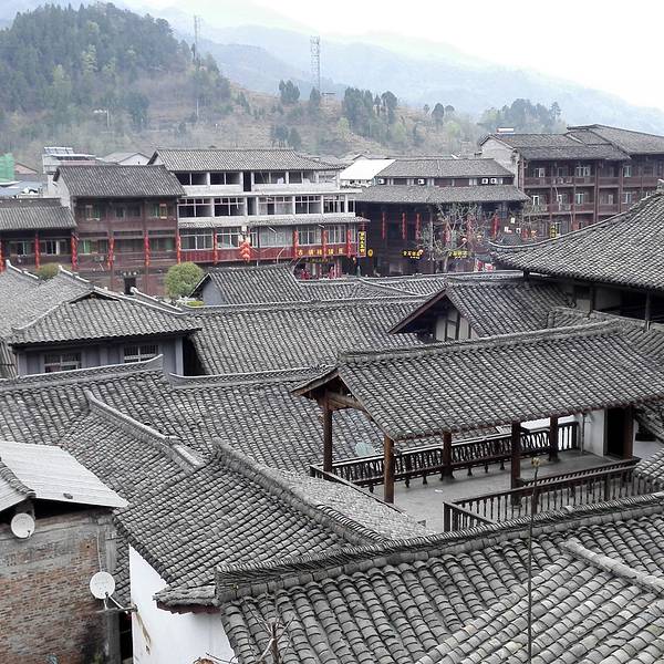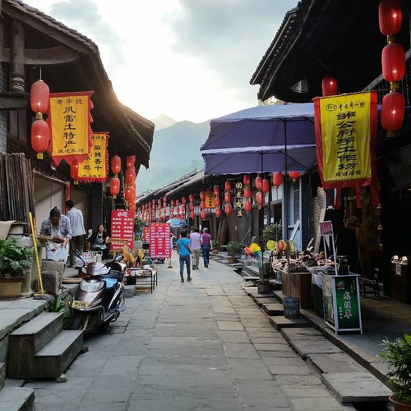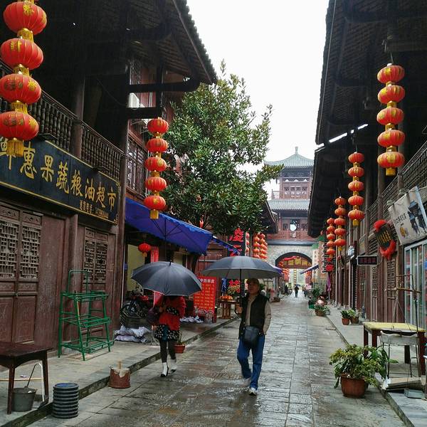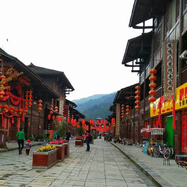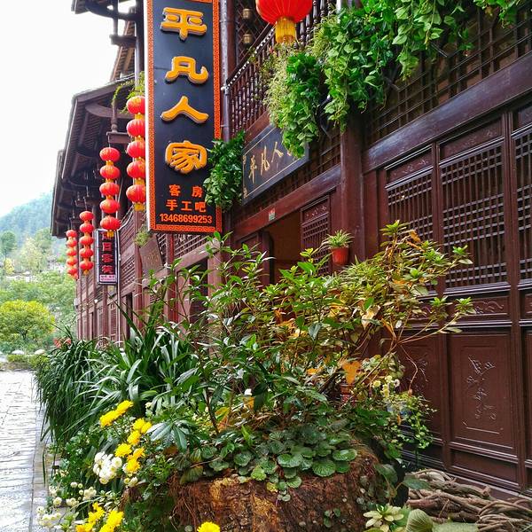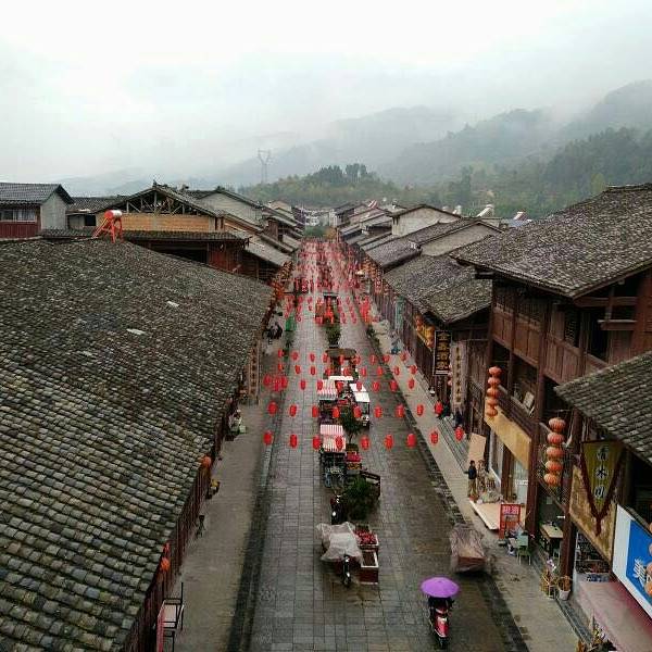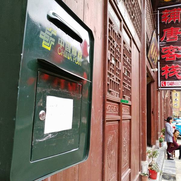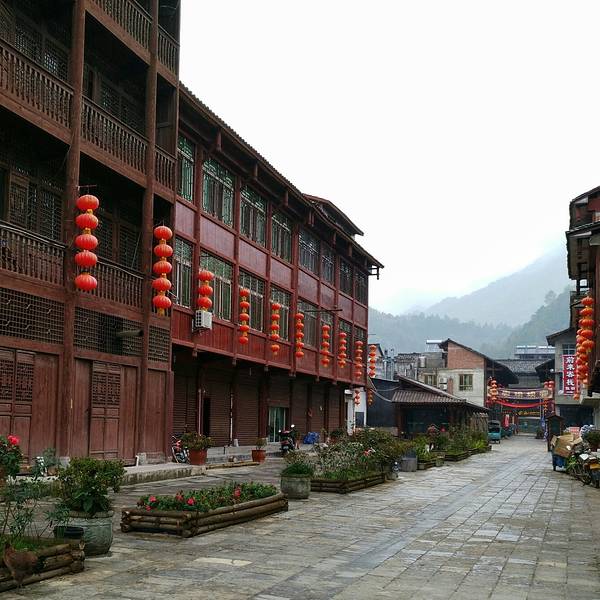 桥叫“飞凤桥”,楼叫“栖凤楼”莫不是这里有什么传说……这个楼有三层,楼上有迴廊,站在上面下面的景致一览无余,黑色瓦片的屋顶,挂着红灯笼的屋檐还有黄底黑字的愰子在随风飘荡,店铺里的货物琳琅满目,街道上的人有的三五成群摆龙门阵的,有作事情的,有闲逛的,还有我在看风景的……楼顶上就我一个人,看完了东面看西面,看罢了南面看北面,真好啊!开始用自拍杆摆起了pose哈哈!看够了就下了楼往古镇的大门走去,一路上走走停停……卖特产的商铺,这里没有义乌那种千篇一律的小商品,基本都是本地的土特产,什么酱菜啊,豆豉啊,山里的土特产……可能是不通火车的缘故吧,总之商业化的气息不浓,叫人挺舒服的。各种酱菜。妇女在切辣椒。夫妻俩合作编竹篮。红红的辣椒多漂亮啊!老式灶台。难道是卖旧家具的?离栖凤楼不远有个挂面作坊,随缘小妹下午路过这里正赶上晒面拍了这组照片,把我喜欢的不得了,第二天晚走一些特意去拍就只有老板在门口吃面了,说到下午才干活,气死我了!窄窄的巷子,土家菜好吃的不得了,晚饭随缘小妹的同学特意从武都来看她,就是在这家饭店请我们吃的饭,净顾吃了忘了拍照,哈哈!河边的小花。客栈打扮的很漂亮吧。看见了吗?老邮箱。走到了古镇大门口,这个院子就是游客中心和景区管委会。
