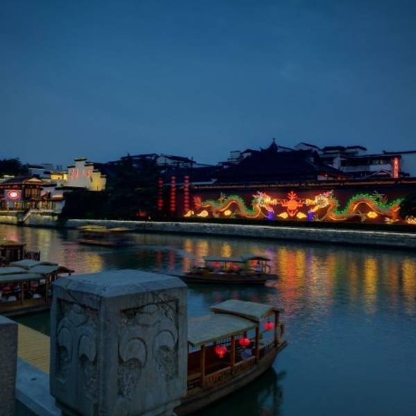 2.游船路线:夫子庙游船码头-白鹭洲公园-七彩水街-东水关-中华门-夫子庙游船码头。晚上坐船的游客会比白天多。大约每隔20分钟发一班船, 航程50分钟。