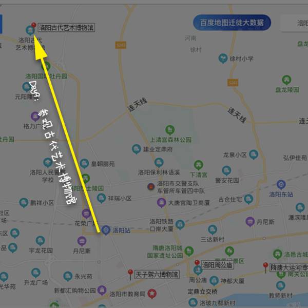 交通:洛阳市中心还可乘坐27路,至洛阳古代艺术博物馆站