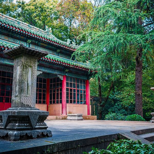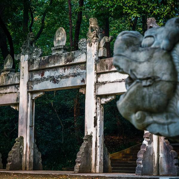 谭延闿,湖南茶陵县人,是民国早期的重要人物之一。曾任参议院院长、民政部长、湖南省长兼督军、民国革命军第二军军长,1927年后又任国民政府主席、行政院院长。1930年9月21日在南京参加军事检阅中风去世。墓园由关颂声等人设计,占地300余亩,1932年12月建成。 谭延闿墓的入口标志是灵谷寺东北侧的“灵谷深松”碑。其实,这块碑是曾任国民政府主席、行政院长谭延闿的墓碑,上面原有蒋介石题书的“中国国民党中央执行委员前国民政府主席行政院长谭公延阎之墓”字样,1949年后才被改刻的。“灵谷深松”这四个字用的是乾隆帝南巡时给灵谷寺的题字。 谭延闿墓的工程由我国著名建筑学家关颂声、朱彬、杨廷宝于1931年设计,建造者是申泰兴记及蔡春记营造厂。1933年落成,历时一年半,耗资约二十多万元。谭墓的设计是煞费苦心的,为了有别于中山陵的严谨对称的格局,设计者们利用原有山水地势,因地制宜运用园林设计手法,将谭墓构筑成曲折幽深,具有江南园林特色的墓园。