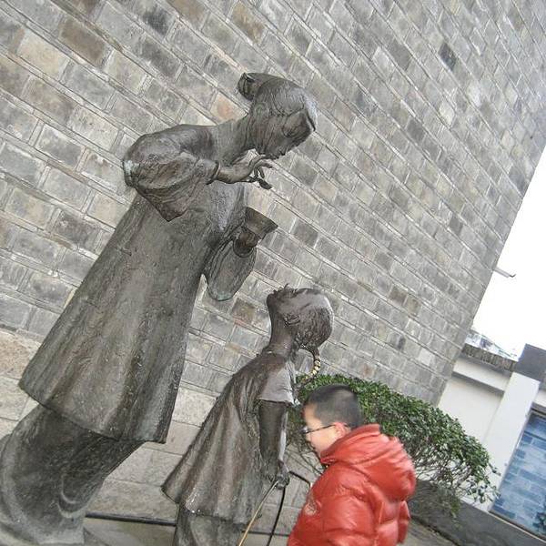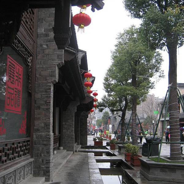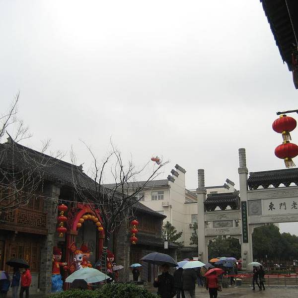 象一些老字号的“谢馥春”、“韩复兴”,还有经典的相声集会“德云社”。街上卖的这种特色小饰品、小挂饰,一般是5-10元的,买了送人很是喜庆。有些小清新的咖啡屋,适合年轻人坐坐聊。景区内的老建筑不多,多数是新建的, 在这样的小巷子里走走,在下雨的季节,舒适惬意。街上有好多的特色雕塑,“老门东”牌坊周围有4组街头雕塑,分别是黄包车夫、糖芋苗、老邮筒、学童进馆(上私塾)。雕塑人物全“穿”着明清服饰,惟妙惟肖地再现了老门东明清时的民居生活。雨中游老门东,别有一番滋味。既能体会过去的老建筑,也能感受到新建清新小店。