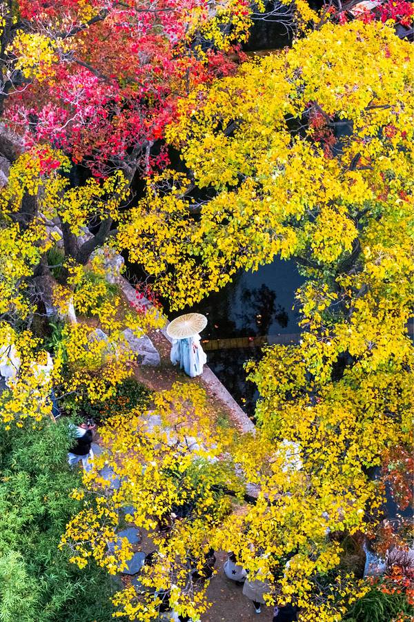 - 在这里,乌桕与古典建筑和人文氛围交融。它们构成了一幅生动的中式秋景。