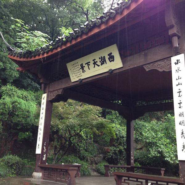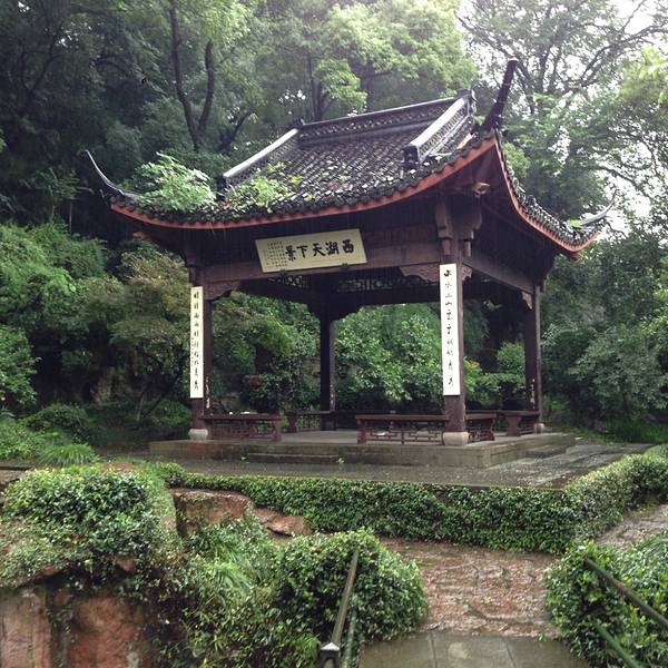 感谢台风“灿鸿”使我能有机会在雨中漫步,西湖边漫步,信步走进中山公园。 中山公园这个景点,在西湖边上不是很有名气,不过确实很有特色。最早是乾隆皇帝的行宫,现在建筑已不复存在了,只留下很多基础和遗迹,都用玻璃罩扣着。大门对面有个牌坊,上书“光华复旦”四个大字,取自《尚书》,原来是行宫的牌坊。进到里面有个“孤山”的影壁,据说是宋人的遗迹,比较著名的景点“万菊亭”,西湖天下景等处,在细雨中漫步欣赏,人不是很多,看起来心情都很陶醉了,大门两侧,有几个小店,有一处卖书、明信片、茶具等很有点意思。其余两、三家卖得都是不值钱10元一个工艺品。 我的旅游时间:2015年7月11日 适合旅游时间:1-12月份。 推荐游玩时间:1小时。 费用:免费。 楼外楼饭店就在附近,浙江博物馆毗邻。