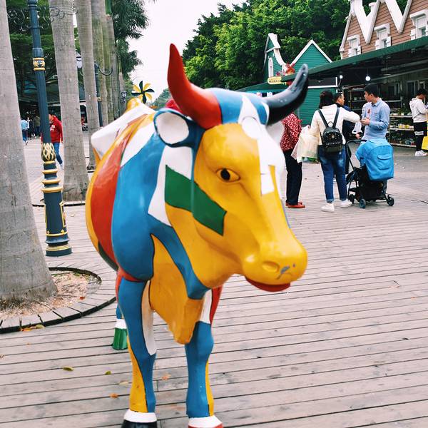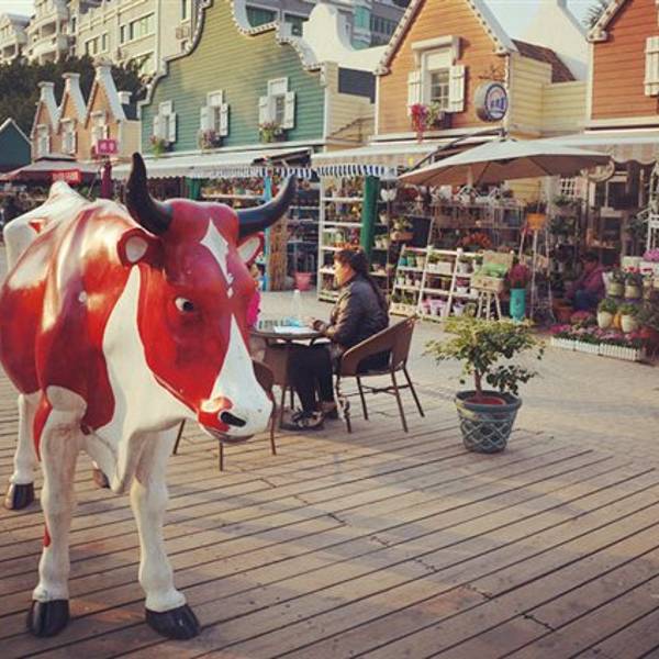 【售卖产品】花卉小镇除了各种鲜花、盆栽(多肉也是超级多)之外,还经营有宠物(鸟、鱼、猫狗)、咖啡甜品餐饮店(这个还是偏贵的),茶具店也有好几家,基本来这里都会忍不住买上一点东西带回家。【布局】正门口是标志性的风车建筑,进了门左手边就是免费开放的花卉博物馆,走一遍还蛮长见识,告诉你各个地方的市花省花。两边店铺中的过道上,有几头彩绘牛特别招人喜欢,总是不断有粉丝凑上去合照。快走到中间时便能看到绿色长廊,穿过那里更多的是文人雅士的收藏店,偏小众。正中间便是郁金香雕塑,时候到了还会喷泉也会开,右边出去就是很多人躺着休息的广阔草坪了。这里还有一处演出台,每周日都有活动。【建议游玩时间】一般走马观花看一下一个小时便OK,但既然来了,买买东西喝杯下午茶,也是值得花半天慢慢看的。因为温馨甜蜜的环境,很多摄影团队会在这里拍写真,想要在摄影方面练练手的更应该来这里,很多道具题材可供做背景或主体,也许是只拍不买的人太多,有一些小气的店也挂上了不给拍摄的牌子OJZ 展开