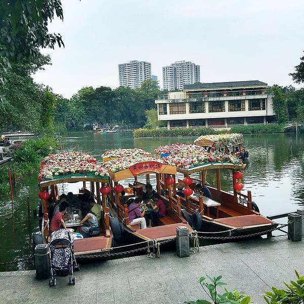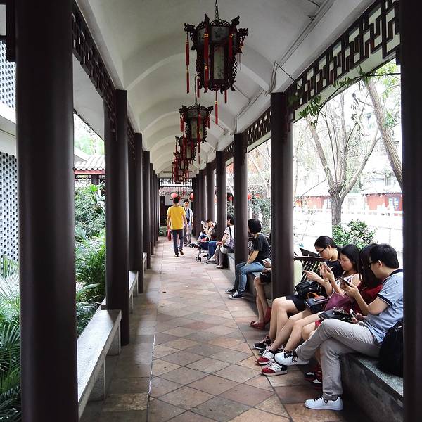 🌟中间有唱粤剧的戏台子,每天有不同的戏曲演出;中午在泮溪吃完午饭就顺着荔枝湾走,带着几个外国的朋友。