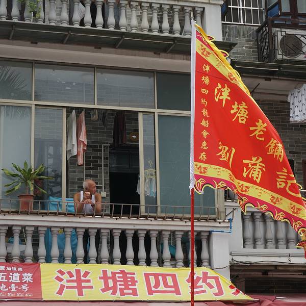 经过了大石头后,在右手边就会看到梁家祠,梁家祠里不像别的祠堂那么安静,这是我见过最热闹的祠堂了,门口已经挂上了端午游舟的横幅,在入门两边也摆着狮头、大鼓,里面还有一桌人在吃饭,感觉已经是别人家了,就没有冒昧走进去。在这里蛮多都是当地人周末出来,老人带着小孩的,年轻人带着宝宝的很多,在这里真的可以体会到什么叫“十里荔枝湾,千年西关情”。不知道现在在这里住着的是不是梁氏的后代,看到他们一家在这里悠闲的过生活,看到也是一种遐思这里似乎有一种江南水乡,西塘的意境,桥下有两艘狭长的龙舟船,看上去已经有些破旧了,不知道是不是下个月端午节要来游船的。这里游客偏多,走在桥上上看右侧的街,已经是卖着广州特产美食之类的,我们在对侧走着,发现了一位可爱的老爷爷就在二楼的窗台上看着风景。很快五月五端午节就要到了,下次来这里希望可以看到众人欢庆龙舟的景象,如果能在广州老城区看到文化遗产的传承和创新是很令人感慨的一件事。 展开
