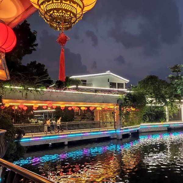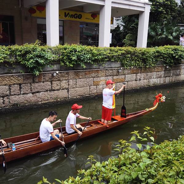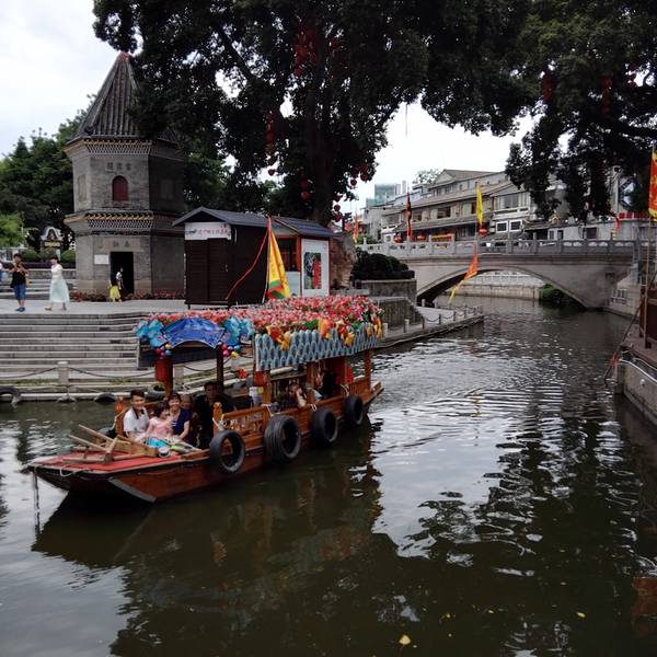 体会岭南水乡风情,坐上摇橹船,看两岸西关大屋式的建筑。