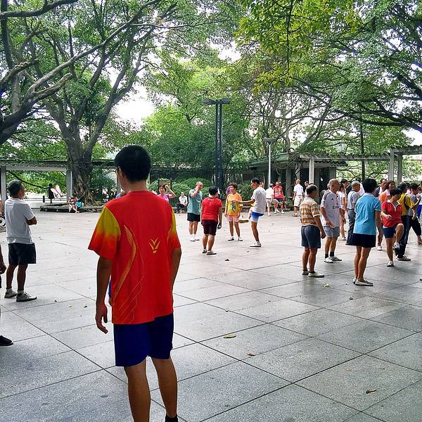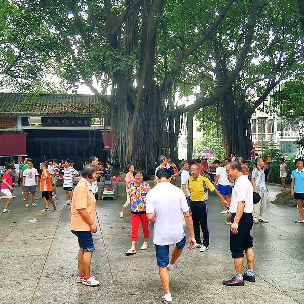 坐等游船的人们广州人民的健康运动,踢毽子,而且还是花毽。