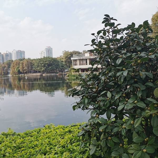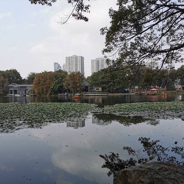 荔湾湖公园旁的荔枝湾新景,飘着细雨有凄美的感觉,闹市中的安静一角。