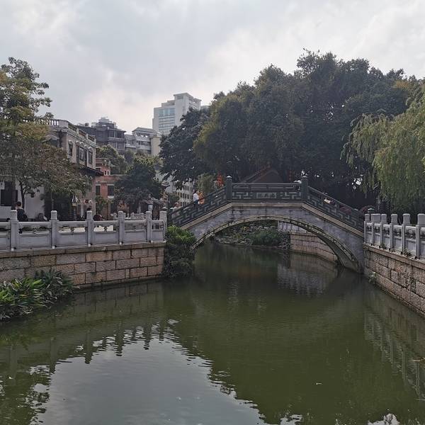 两岸的栈道和小桥相连,拍照好去处;推荐特色:🌟这边小桥流水,富有广州特色。开放时间:全天中午在泮溪吃完午饭就顺着荔枝湾走,带着几个外国的朋友。