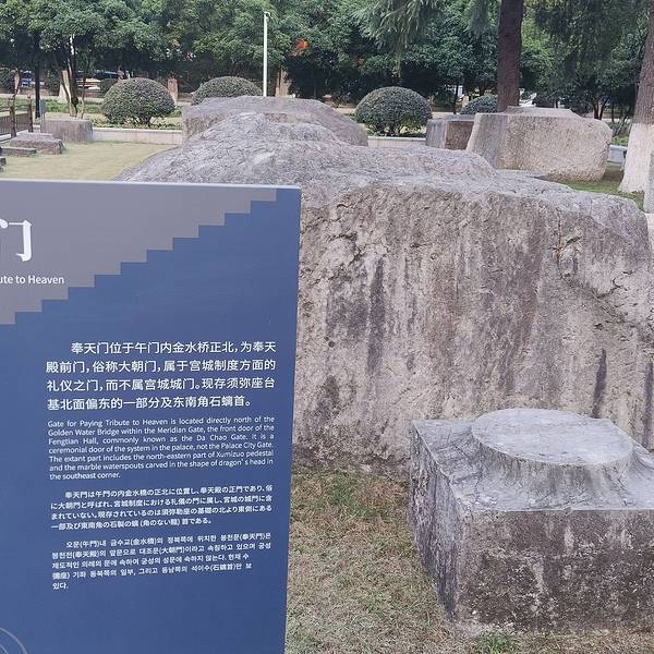 原明朝皇宫的所在地,现只剩下地下埋藏的石构件,但依然能窥见当年皇宫的雄伟。