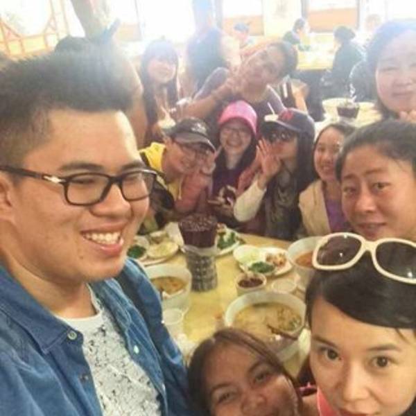 原计划是到西山森林公园游玩,再去看金马碧鸡坊的,但听很多游客都说,昆明滇池很脏,那我们去了感觉就没意思了,因此订了七天连锁酒店(昆明火车站店),休息一个上午,中午再打的(10元)到金马碧鸡坊,在附近的“桥香园”吃正宗云南过桥米线。在里面偶遇一班泰国放假中的游学团(桥香园太旺了,找了很久没找到位置,图片中最大个头的小伙主动跟我们说不介意我们搭台,坐下后才知道他们是泰国学生,学中文的,他还会说一些粤语,哇!太犀利啦~~~)这就是“金马坊”和“碧鸡坊”。自拍合照一张,到此一游!在步行街走了一圈,不好玩。我们来喝咖啡,吹吹水,打发时间。。。