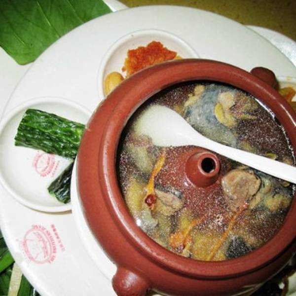 必须推荐桥香园里面的毛血旺,6元钱,非常美味,只要能吃辣。另有3元钱的木瓜汁,好多人买,很大一杯。 桥香园进士过桥米线,三层小碟子,三文鱼、韭菜、黄瓜等各种,都是生的。最上面这盅汤很鲜美,据说叫汽锅鸡汤。另外三鲜过桥米线,东西少一些,但味道也很不错。
