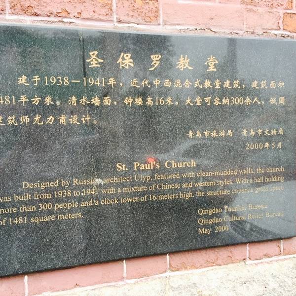 特别着重这个充满着红色浪漫气息的教堂,恩,其实不管是十年前用心策划的你,还是十年后悉心感受的我...圣保罗教堂位于观象二路1号,由俄罗斯建筑设计师尤力普设计,于1938年始建,1941年完工,迄今已有75年历史。十年前因为憨林的青岛地图,第一次知道这个教堂,但是好像很多去青岛的朋友都很少去这儿,游记里基本没...圣保罗教堂位于观象二路1号,由俄罗斯建筑设计师尤力普设计,于1938年始建,1941年完工,迄今已有75年历史。十年前因为憨林的青岛地图,第一次知道这个教堂,但是好像很多去青岛的朋友都很少去这儿,游记里基本没怎么看到。所以当一阵闲走后转头,就那么真实的展现在眼前,突然有一种十年夙愿终得实现的说不清感觉,突然很想哭,汗个,哈哈!这一抹红,萦绕在心间十年,憨林,当我一点一点触碰这些红色的石砖时,我想你也一定可以感觉到吧。抬头仰望,刚好太阳照在塔尖,晃晃而迷人眼,却透过眼里的朦胧感染了这抹青岛最迷人的红。我努力的从不同的角度去展现红色圣保罗教堂的红美,因为我记得十年前你给我介绍青岛的时候,特别着重这个充满着红色浪漫气息的教堂,恩,其实不管是十年前用心策划的你,还是十年后悉心感受的我,我们都是这抹红色见证下最好的我们。我行走在不同的方位,想透过这层层的光线去遐想,如果你在,会不会不管不顾拉着我一直从门口跑到塔顶,站在视线辽阔的窗口,望尽青岛的繁华落尽。转过身,又是另一个意味的圣保罗,对着相机里的照片和现实的红砖身影,轻轻的说一声再见,不知道下一次再来是什么时候,但是谢谢你曾见证我们之间的美好。 展开