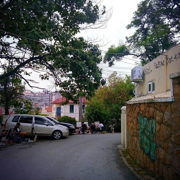 坐公交车在「市立医院」下车即可。教堂不大,进去走了走没发现什么人,游客也很少见,整体来说比较肃静。教堂周围有很多学生支着画板写生,可见这里风景很好。正走着,突然下起了雨。青岛的天气就是这样,下起雨来,总是让人猝不及防,刚好看见一个美术辅导班。不一会儿雨就下大了,赶紧找了一个庭院避雨。这雨下的有些顽皮,足足等了一个多小时,鞋已经被浸湿了,本想打道回府,但闻着雨后的新鲜空气,想着还是继续前进吧。雨后路上留下的小水塘,乍一看,像是一个桃心的形状。 展开