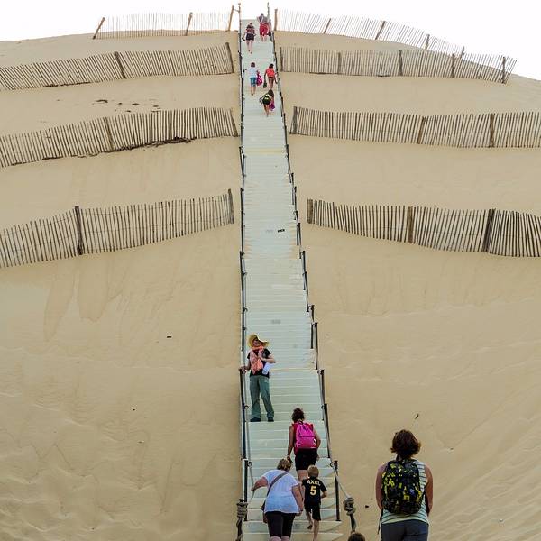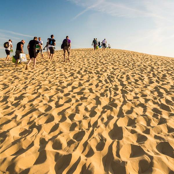 皮拉沙丘作为欧洲唯一的沙漠,不知怎么回事,就矗立到了法国的海滩上了。沙丘还是很有沙漠范儿的皮拉沙丘作为欧洲唯一的沙漠,不知怎么回事,就矗立到了法国的海滩上了。为什么别人只是沙滩,你就能变成个沙丘呢?现在高110米,宽500米,南北长度2.7公里,总体积达到6千万立方米。每年向内陆移动1~5米,吞噬着...皮拉沙丘作为欧洲唯一的沙漠,不知怎么回事,就矗立到了法国的海滩上了。为什么别人只是沙滩,你就能变成个沙丘呢?现在高110米,宽500米,南北长度2.7公里,总体积达到6千万立方米。每年向内陆移动1~5米,吞噬着东侧的森林和房屋。我想,早晚有一天皮拉沙丘会把欧洲全覆盖了吧~