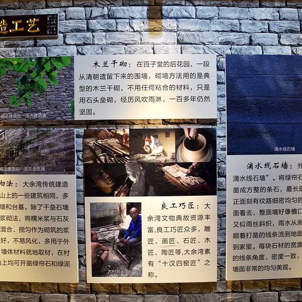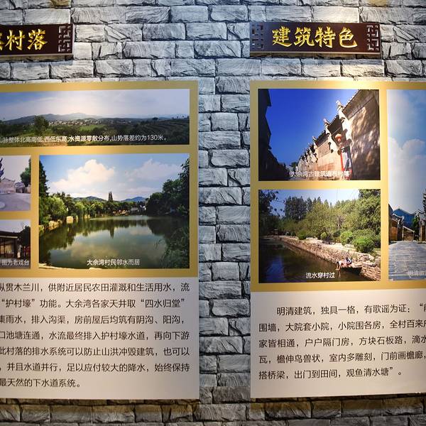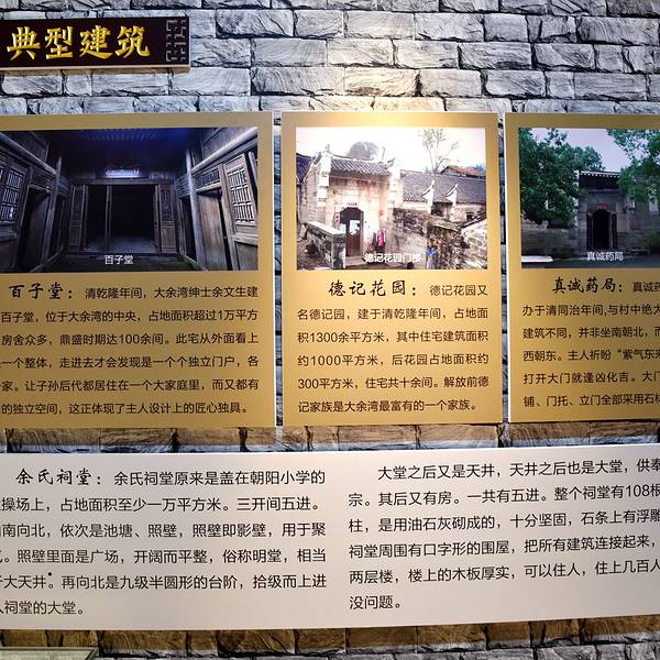 大余湾有一座古村落博物馆,也是典型的徽派建筑,我们走进斜向内缩的大门去一探这座古村的奥秘虽然位于荆楚大地,大余湾村里确是典型的徽派建筑,和周围村庄形成了鲜明的对比。究其原因,原来大余湾的人口中一大部分是从江西迁居而来。迁居之后把家乡的建筑风格也带到了这里。据村中保存的《余氏宗谱》记载...虽然位于荆楚大地,大余湾村里确是典型的徽派建筑,和周围村庄形成了鲜明的对比。究其原因,原来大余湾的人口中一大部分是从江西迁居而来。迁居之后把家乡的建筑风格也带到了这里。据村中保存的《余氏宗谱》记载,村中人数最多的余姓诞生于余水,拜古代琴师俞伯牙为余姓祖先。唐朝末年余氏从中原地带迁移到徽州婺源,宋代移居江西德兴,明朝初年江西填湖广,余氏一族从江西迁往湖北。其中余秀三一族来到黄陂大余湾一带,与同从江西迁来的杨姓、章姓、乐姓、黄姓一起,成为大余湾的开拓者,五大家族世世代代和谐相处至今。当地传承着一首民谣:“杨家一、章家二、余秀三、乐氏四、黄名五。”就是对这一状况的描述。大余湾有一座古村落博物馆,也是典型的徽派建筑,我们走进斜向内缩的大门去一探这座古村的奥秘。在传统文化中,始终贯穿着天人合一的思想,建筑选址布局正是这一思想的具体体现。大余湾位于木兰山系南麓木兰川南段,系龙脉所在,山势自北向南降低,连接着葫芦山来到村后的小山包。大余湾背有山靠,前有水照,负阴抱阳,藏风得水,左青龙右白虎,双龟朝北斗,金线钓葫芦,中间如意太极图。大余湾所在的木兰川地势平缓,土地肥沃,非常适合农耕。传统风水认为,这样的格局可谓冠绝天下,是理想的安居之地。传说大余湾的风水连玉帝王母都羡慕,不希望人间皇帝出生于此,于是派人斩断龙脉,却遭到观音指责违背天理,于是玉帝下旨派福、寿、禄三仙抛下葫芦籽,长成五福葫芦,让这个村子世代福禄双全,富甲一方。大余湾村的整体布局也处处体现着天人合一的思想理念,村庄布局风水与建筑完美统一。大余湾坐北朝南、依山就势建村庄,自东而西建成四个中心。东边第一个是宗祠(现为小学),第二个中心是百子堂,(已拆毁),第三个中心是主街,有几排并列的房屋;第四个中心是德记院。在建村布局时,大余湾的先民充分考虑了地形因素,为了避免山洪侵袭,从北向南沿着五排房屋分别建了两条排水沟,以保证污水排放和泄洪。村中沿山坡向下建有五口水塘,依次用于洗菜、洗衣,饮牲畜,设计科学合理。大余湾有一首流传的歌谣是这样描述的:“前面墙围水,后面山围墙,大院套小院,小院围各房,全村百来户,穿插二十巷,家家皆相通,户户隔门房,方块石板路,滴水线石墙,室内多雕刻,门前画檐廊。” 展开