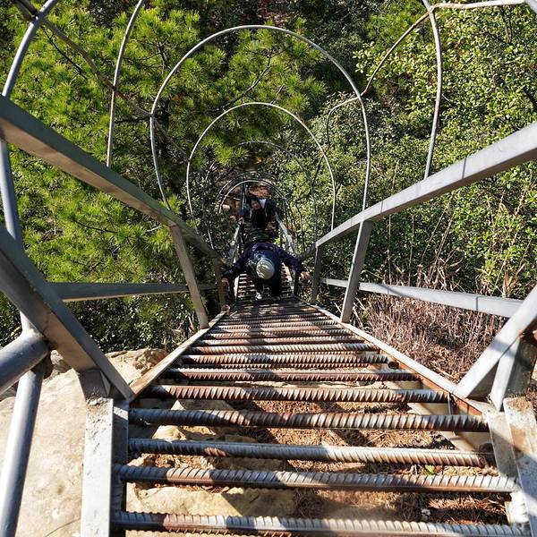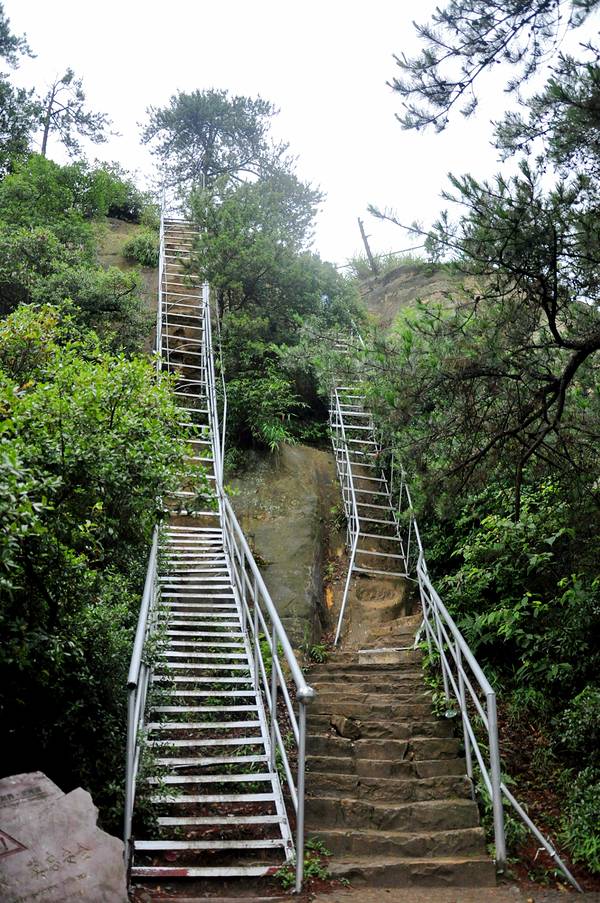 上来后的风景确实壮观,有如置身于云海天庭之中,确如一步登天陡峭的楼梯直接上达峰顶,楼梯不长,但是很陡峭,需要小心。上来后的风景确实壮观,有如置身于云海天庭之中,确如一步登天。如若在这里放声高歌,回声此起彼伏,不绝于耳,岂不快哉?