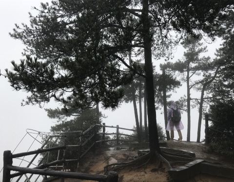 金骆驼 可从杨家界门票站进入,经八里坡登上峰顶,也可以在游览完周边景点之后,乘坐环保大巴在乌龙寨车站下,步行#点评召集令#看完“五郎拜佛”后,我就向“一步登天”出发了。路不好走,要爬一段近乎90度的32步垂直铁梯。这个算好的了,近乎90度的32步垂直铁梯的照片我没拍到。因为那天下雨,不安全,所以没拍。来到峰顶,峰...#点评召集令#看完“五郎拜佛”后,我就向“一步登天”出发了。路不好走,要爬一段近乎90度的32步垂直铁梯。这个算好的了,近乎90度的32步垂直铁梯的照片我没拍到。因为那天下雨,不安全,所以没拍。来到峰顶,峰顶平坦,视野开阔,有“一览众山小”的感觉。可是当我好不容易赶到的时候,因为当天下雨,全都是雾,什么都看不到,内心很沮丧。拍了一张照片证明我来过就往别的景点赶了:没想到没走几步!就听到那边传来了游客的声音说:“散了,散了”。我赶紧跑过去,可是当我到了,雾又浓了,我无语了。但是看还有人在那里等雾散,说等等,张家界的雾就是这样任性,说来就来,说走就走,美景值得等待!于是,我想,我也好不容易来了一次,也等等看吧!
