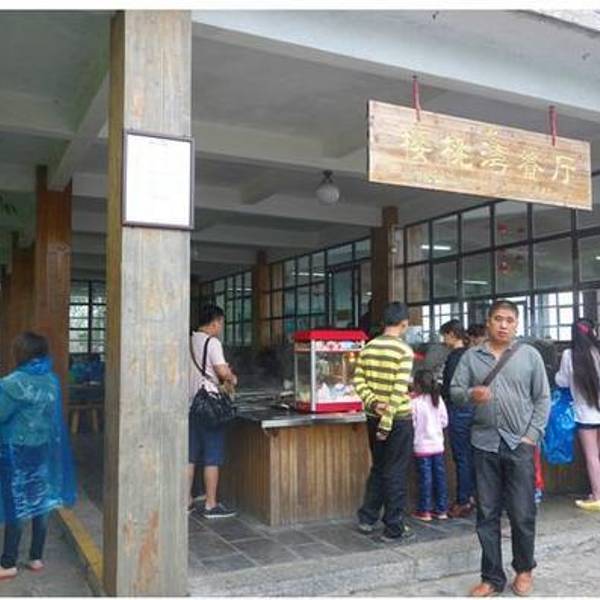 顺着栈道在迷雾中行走,很快就来到了樱桃湾餐厅。看看时间也到饭点了,在这里草草解决了午饭(素面20元/无穷鸡腿10元/酒鬼花生5元)。
