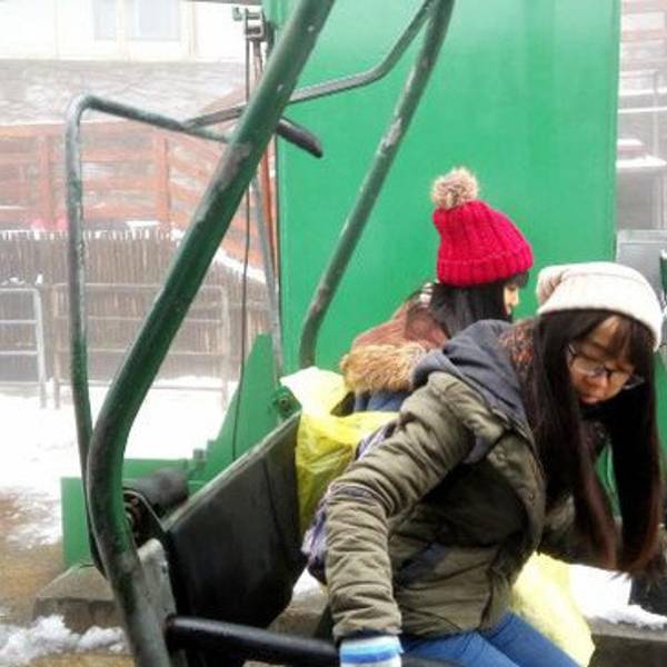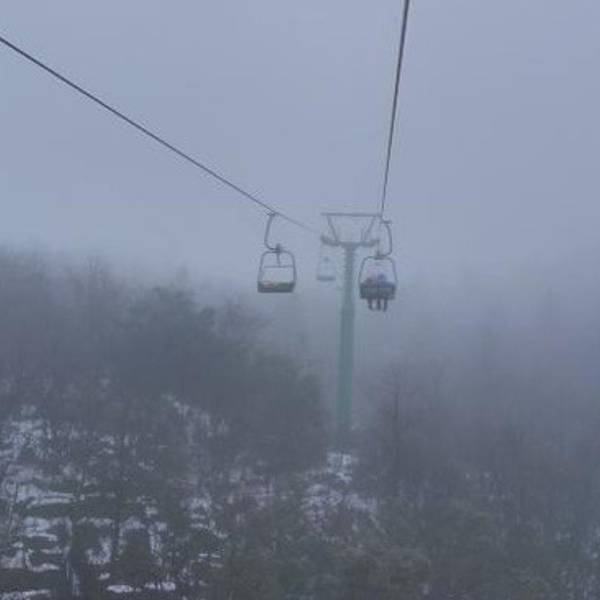 樱桃湾是天门山西线的终点,在这里可以乘坐观光小缆车到达天门山索道上站乘索道下山,也可以樱桃湾餐厅前面走东线到达天门山索道上站。由于当天天门山的积雪太厚,观光缆车停运,我们只好走东线到达天门山索道上站,西线和东线都走了一个全程。想不到东线的雪更加的厚。东线走完后就乘索道下山了。