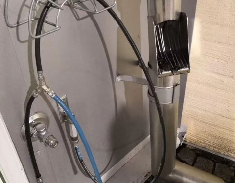 夜游乌普萨拉大学 四点到达天就完全黑了,循着亮光拍下了以下能让手机感光的场景图5⃣ 右边的雨落水管有个过滤器,可以过滤树叶而不至于堵塞下水道。左边那个细的软管大家猜猜是干什么用的?