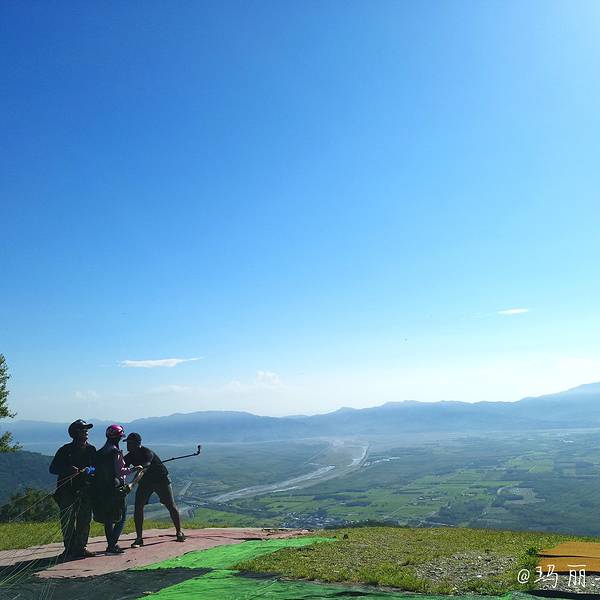 从山下要坐一辆类似翻斗车的交通工具到山上,一路很颠簸,不过心中很兴奋。感谢天公作美。让这次的花莲之行没有失望而归。天空很蓝,能见度超好。山上的景色也很美!地点:花莲林田山明利滑翔伞基地