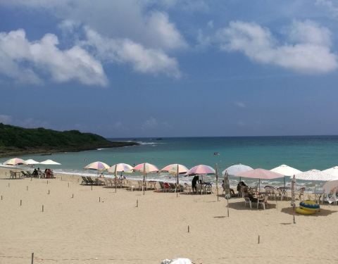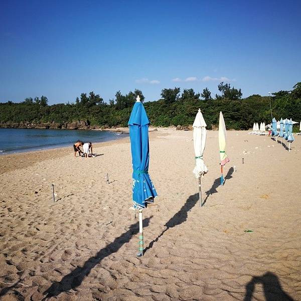 沙滩感觉也不大,比较干净,有一些人在靠近海岸的水里游泳。来到垦丁玩水是一定要的来到垦丁玩水是一定要的! 垦丁沙滩有三个,大湾、南湾与小湾,这次垦丁凯萨饭店就是为了饭店内有连通步道到小湾沙滩,不过在这里要提醒大家住宿房客在小湾沙滩除了可以免费使用阳伞躺椅外,连玩沙工具都可免费借...来到垦丁玩水是一定要的! 垦丁沙滩有三个,大湾、南湾与小湾,这次垦丁凯萨饭店就是为了饭店内有连通步道到小湾沙滩,不过在这里要提醒大家住宿房客在小湾沙滩除了可以免费使用阳伞躺椅外,连玩沙工具都可免费借用,大浴巾在饭店泳池先借可带到沙滩去,营业者彩色阳伞区域,这里不只一家在经营租借阳伞与泳圈,我们在第二家热情的老板招呼下租了一个位置$300元,拿出我们自备的一桶玩沙工具开始玩!自备小型泳圈得再穿救生衣或充气背心,加上泳圈要有绳子可让大人拉的以免连人带泳圈被冲走;幼儿千万别带两只脚穿过洞的造型泳圈在海上玩(即使有绳子),因为浪来这一翻不得了,整个脚卡在泳圈内两脚朝天,上半身一时半刻连大人要翻回来都得费点力气 是开放式的沙滩浴场。沙滩上有很多的躺椅,大部分都是凯撒饭店自己的,另外一边也有人在沙滩上做出租躺椅的生意。 沙滩感觉也不大,比较干净,有一些人在靠近海岸的水里游泳。小湾除了一个凯撒自己的酒吧就没有其他卖水或者食物的地方了,弄得像凯撒的私人沙滩一样,但是外面的游客一样也可以进来。 展开