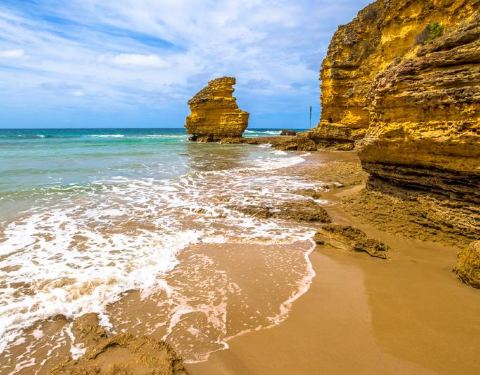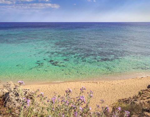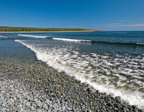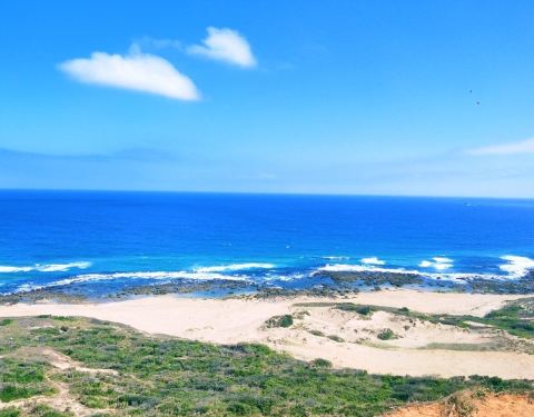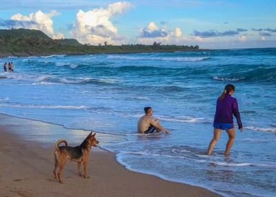 小湾沙滩,此刻海水清澈浪花汹涌,更适合远眺。