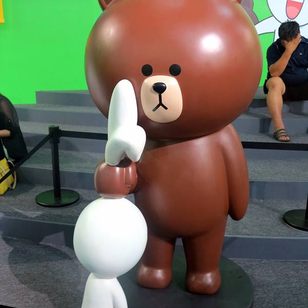 学校附近有小巴直达高铁站,来到户外Line特展的场地,作为布朗尼可妮兔(台湾叫兔兔和熊大?)的死忠粉抑制不住激动啊,连没带学生证门票不能打折都不计较了。可这大约也是Line在大陆被禁的时候吧,后来我才知道。