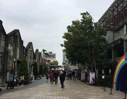 类似于北京798那样由旧厂房改建的创意园区,不过面积小的多。这里前身是台中的酒厂,所以园区里有很多酒罐形状的艺术品陈列,烟囱和酿酒车间也有保留。去时是早上,打太极和跳拉丁的老年人分别占据主楼的一块区域...