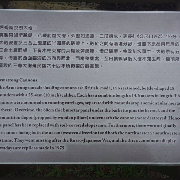 没什么可以好好看看的景点,可以看到荒废很久的练兵场和弹药库,可以看到被摸得发亮的大炮,历史感觉...曾经是台湾的海防线,有城墙,有炮台,四周都比较荒芜,没什么可以好好看看的景点,可以看到荒废很久的练兵场和弹药库,可以看到被摸得发亮的大炮,历史感觉会历历在目,门票不贵,可以好好去看看。