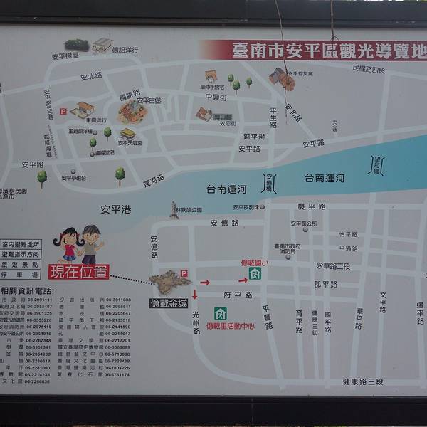 亿载金城位于台南安平区,是清末为加强海防而筑的工事之一,曾是台海安全的重要防线亿载金城位于台南安平区,是清末为加强海防而筑的工事之一,曾是台海安全的重要防线。城门以红砖砌成,外额上书“亿载金城”、内额“中流砥柱”,皆出自沈葆桢手笔。城内绿草如茵,平坦宽广,可见沈葆祯纪念铜像...亿载金城位于台南安平区,是清末为加强海防而筑的工事之一,曾是台海安全的重要防线。城门以红砖砌成,外额上书“亿载金城”、内额“中流砥柱”,皆出自沈葆桢手笔。城内绿草如茵,平坦宽广,可见沈葆祯纪念铜像。亿载金城高约2公尺,由法国工程师设计建造,建材大量取自荒废的安平古堡城墙,城垣四周林木茂密,四隅有突出的棱堡,好架设大炮以利远攻。 展开