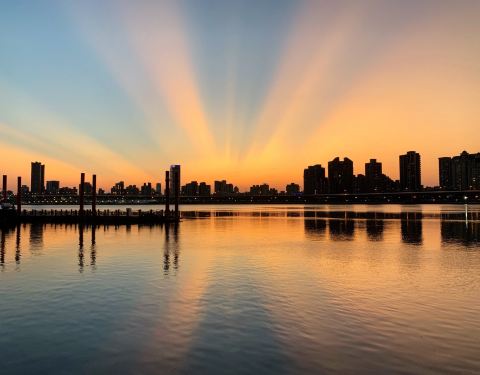 下班後選擇走路回家,在天氣晴朗的日子,非常有機會能看到大稻埕碼頭漂亮的夕陽景觀。