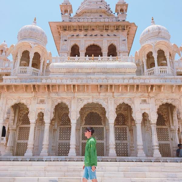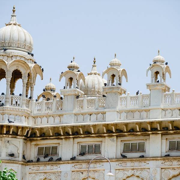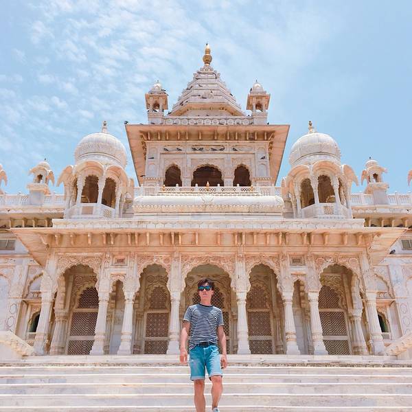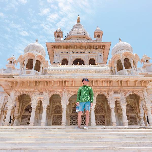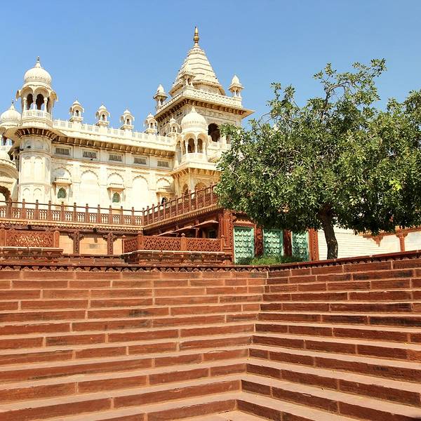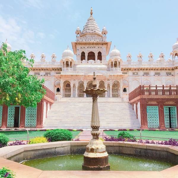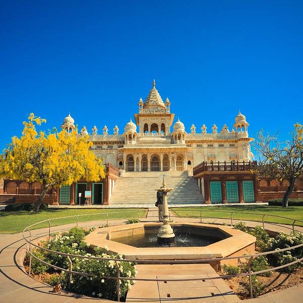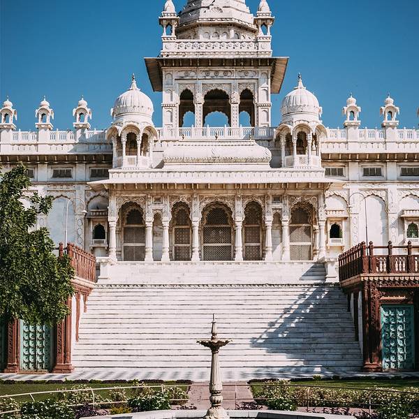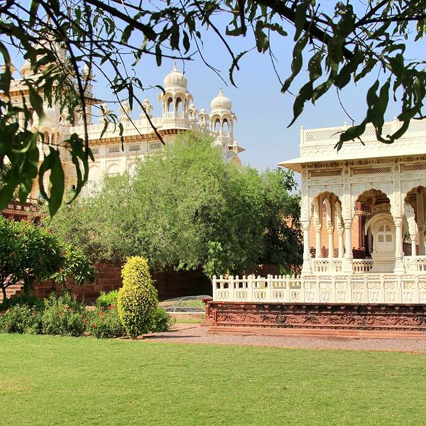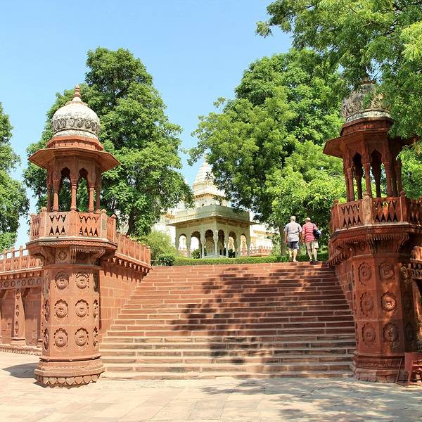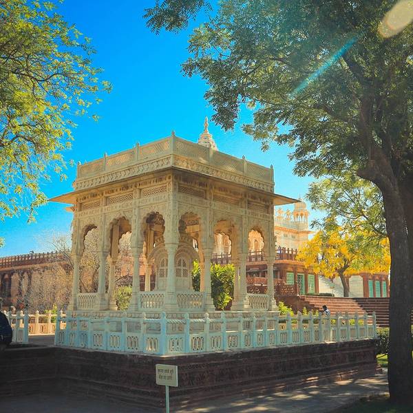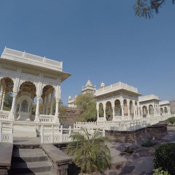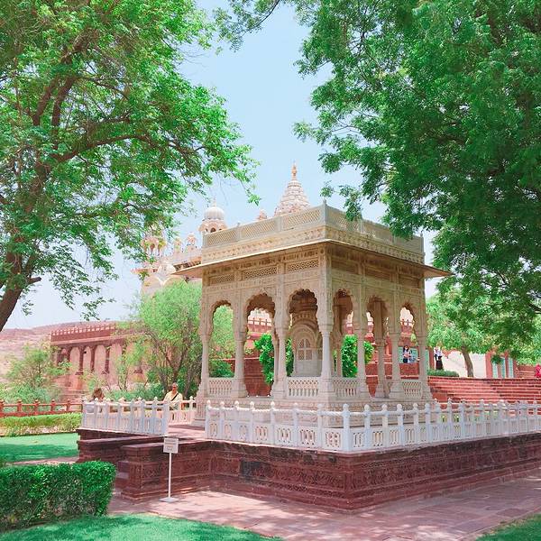 进入陵墓首先印入眼帘的是一棵长满黄色叶子的大树,在蓝天的映衬下前显的特别漂亮。这是一个很古老又很美丽的陵墓。是为了祭祀土邦王贾斯旺特Jaswant.辛格二世,于1899年修建的墓冢。纯白色的大理石,建筑精美。周围排列着很多王公亲属的墓冢。湛蓝的天空下,高贵而典雅。主建筑前有一个郁郁葱葱的平台花园,在这里既可以躲避酷热,又可以眺望远处的梅兰加尔城堡和附近的山野风光。本想着她只是一座陵墓没什么可看的,却没想到如此美丽。 展开