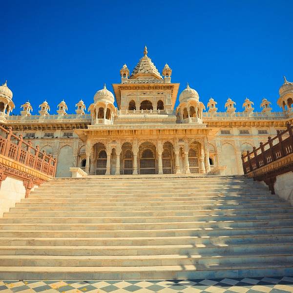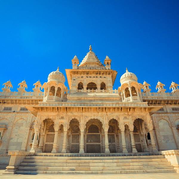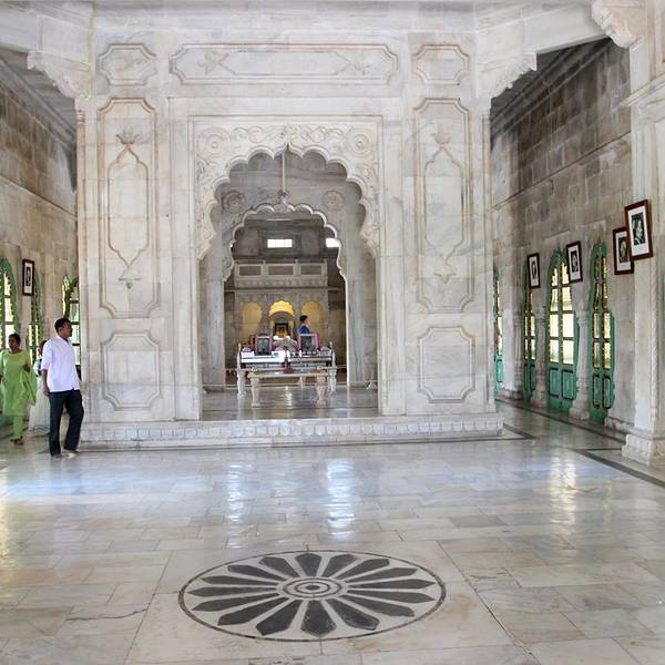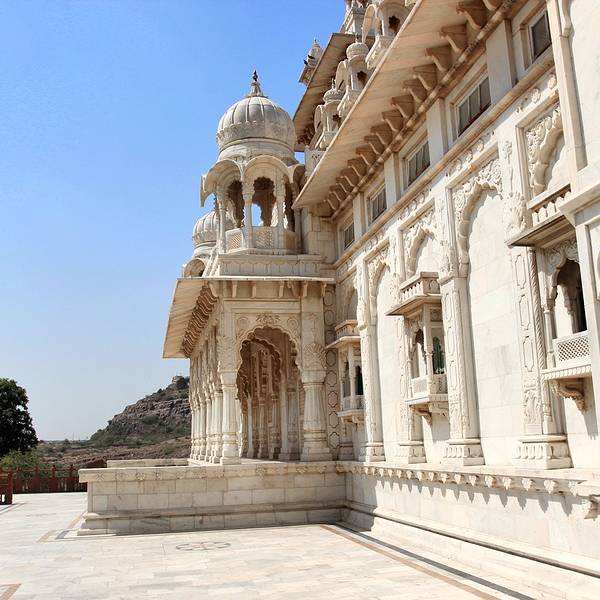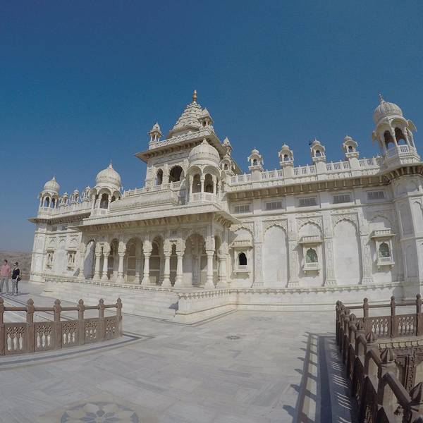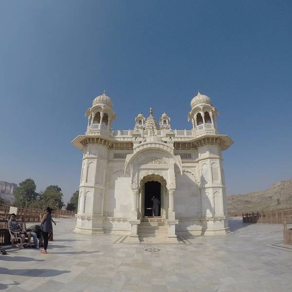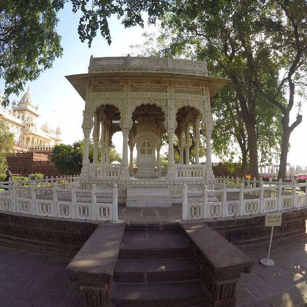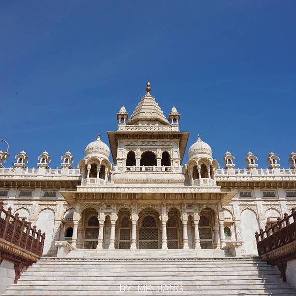 但事实证明里面确实没什么好看的,这么大的建筑物里面仿佛是空的一样,如果实在不方便脱鞋的话可以放...这座陵墓是 焦特布尔 的萨达·辛格王公为了纪念他父亲于1899年修建的一座白色 大理 石建筑。严格来说是一个衣冠冢,陵墓主人的骨灰并没有埋葬与此。同时这里也是 焦特布尔 统治者传统的火葬场。