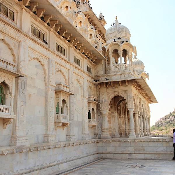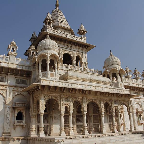 整个陵墓更像是一...这座陵墓是 焦特布尔 的萨达·辛格王公为了纪念他父亲于1899年修建的一座白色 大理 石建筑。严格来说是一个衣冠冢,陵墓主人的骨灰并没有埋葬与此。同时这里也是 焦特布尔 统治者传统的火葬场。
