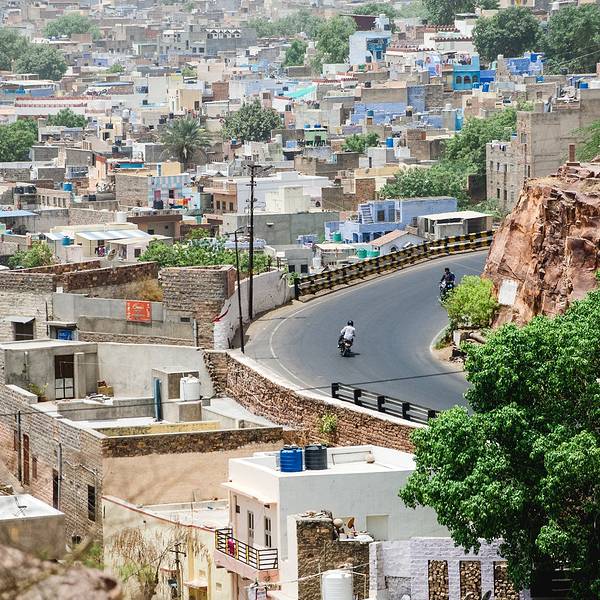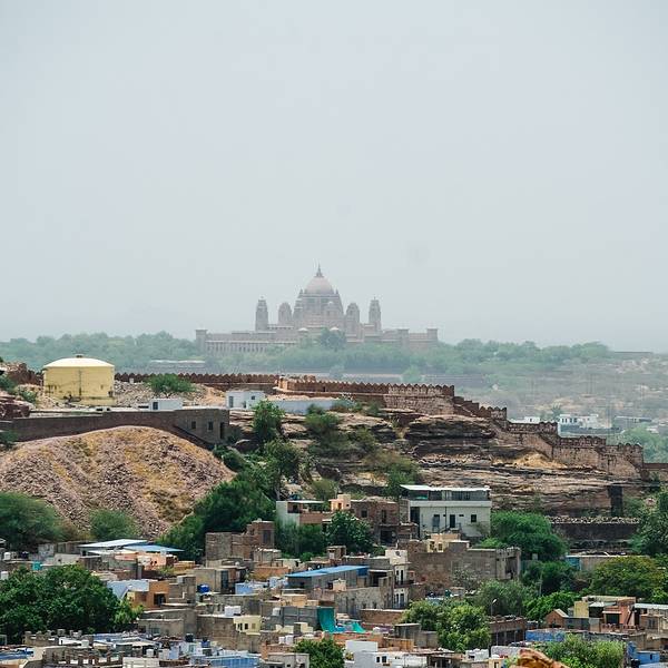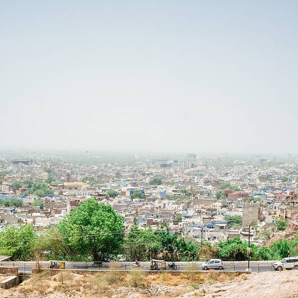 一早出发去焦特布尔最著名的古堡,先路过了贾斯旺·萨达陵墓,它就在古堡的下方,所以顺路去参观了一番一早出发去焦特布尔最著名的古堡,先路过了贾斯旺·萨达陵墓,它就在古堡的下方,所以顺路去参观了一番。 在半山腰上,就可以俯瞰焦特布尔城区,这样看的话,还没有觉得是蓝城的样子。