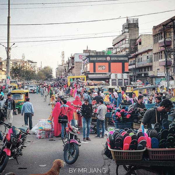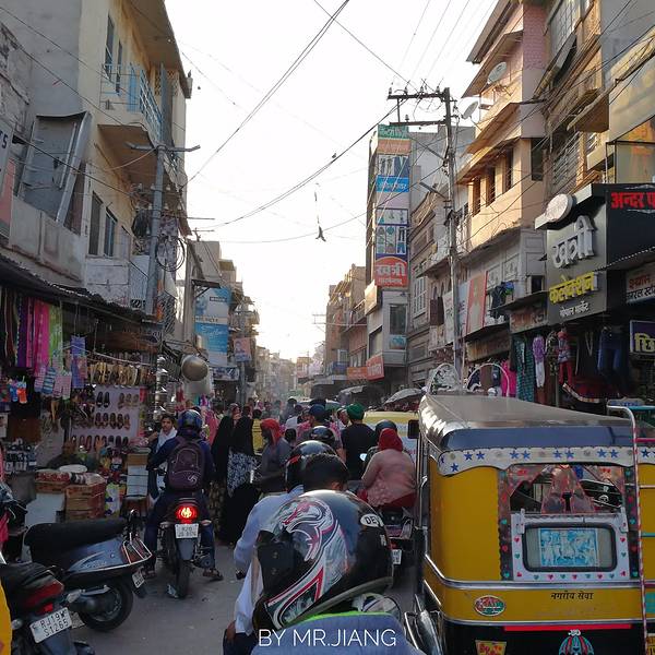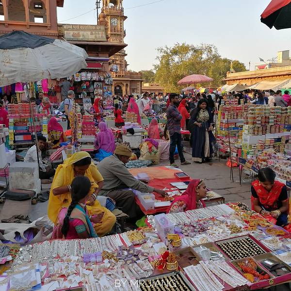 回青旅路上还遇到了一匹好好看的大白马,主人正在给它洗澡,看着它的表情也会觉得能有人伺候着给洗澡是一件多么幸福的事情...(懒癌发作again......)青旅离火车站只有1.5公里,两个身强力壮的男人当然要选择自力更生走过去,而且还能顺便看一下城墙里 的“旅游区”和城墙外的本地人区到底有多大差别。其实在围绕钟楼的市场更像是一个放大而且露天超市,有卖水果蔬菜的、生活用品的,还有很多很多买女性小饰品的,而且每一家的种类都很全,只有想不到没有买不到,这也足以看得出来 印度 女性虽然在社会中始终处于不被重视的地位,但是每个女人都有追求和选择美丽的权利,这是人的天性,不可泯灭。离开第一道大门之后仿佛进入了另一个世界,无比熟悉的拥挤的人群、吵闹的喇叭和略显污浊的空气都回来了,我们不得不硬着头皮往火车站走,还好只有1.5公里距离不算远,在 印度 呆了十几天了对这样的环境也算是有些习惯了。值得注意的是, 焦特布尔 火车站的外国人售票窗不在车站里面的售票大厅,而是沿着面对火车站左手侧的小路一路走下去,当走到一个你觉得你好像已经走错了的 时候,那里会有一个黄色小屋。恭喜你,你找到了,外国人窗口就在这个低调的小屋里 。(别问我怎么知道的...为了找这个窗口我差一点没赶上火车,多亏火车很给力地晚点了......)