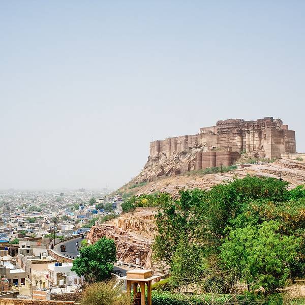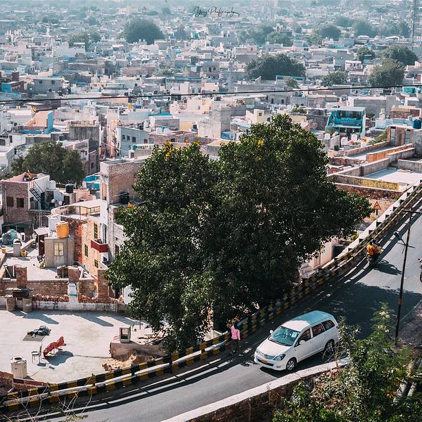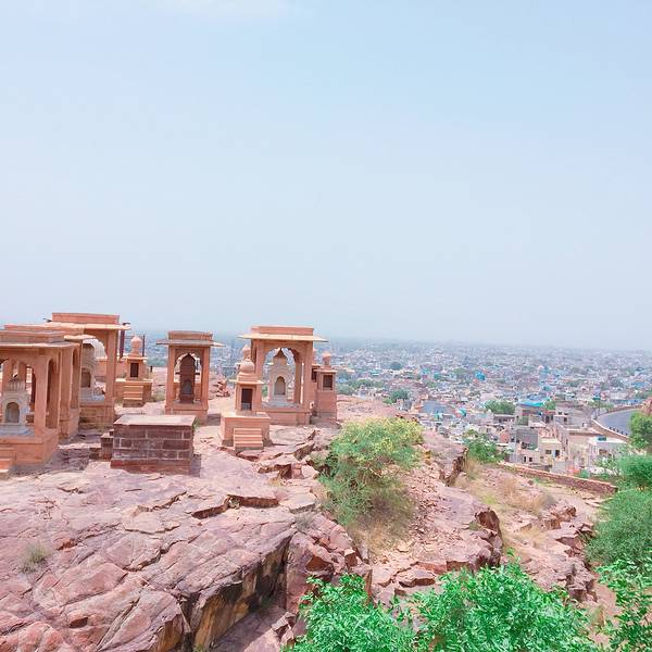 开放时间:9...一早出发去焦特布尔最著名的古堡,先路过了贾斯旺·萨达陵墓,它就在古堡的下方,所以顺路去参观了一番。 在半山腰上,就可以俯瞰焦特布尔城区,这样看的话,还没有觉得是蓝城的样子。