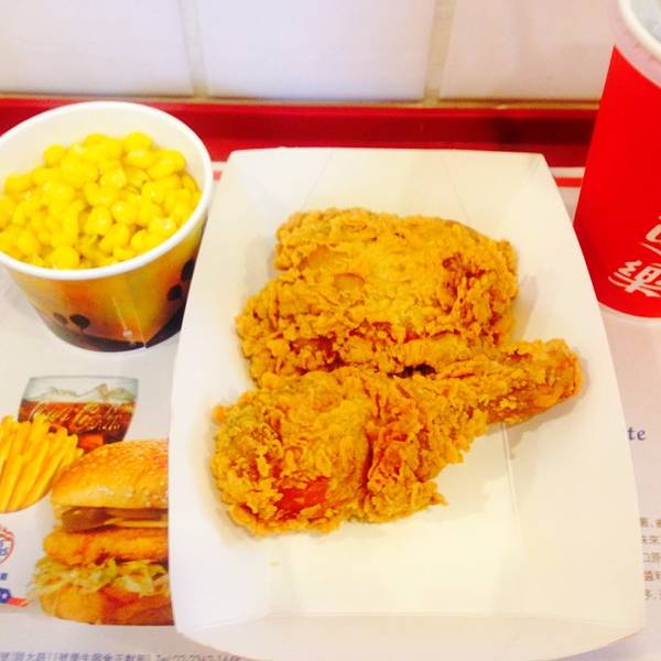 超级喜欢房东家的狗狗。脆皮炸鸡,味道有些像德克士