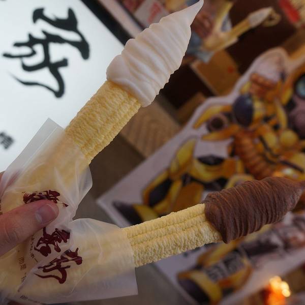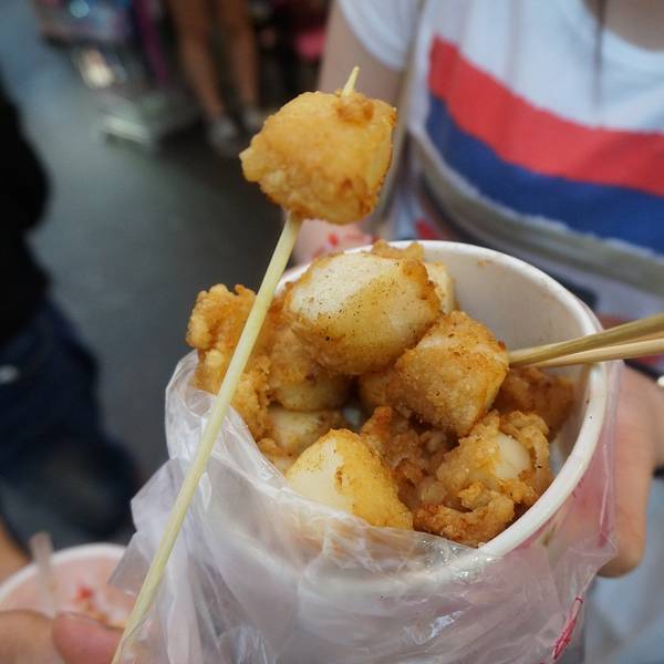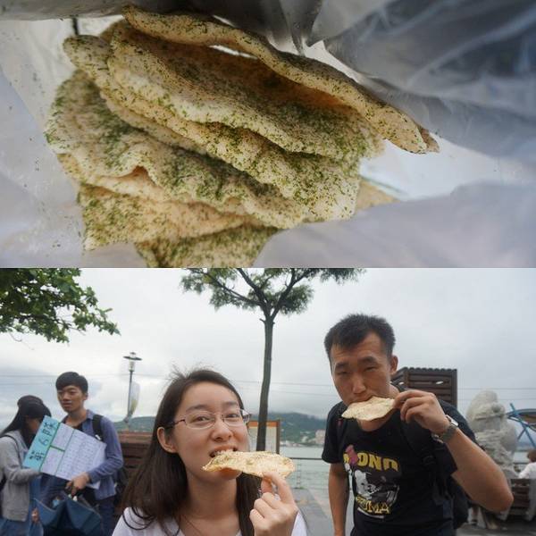 淡水英专路夜市 夜幕降临渐渐热闹起来轰炸大鱿鱼 味道一般 但卖相诱人3、【花枝烧】花枝是一种软骨类动物,类似鱿鱼但不是同一种,台湾很多夜市都有卖花枝烧,但吃过来就只有淡水这家好吃,肉质筋道有嚼劲,分量足价格低!4、【冰淇淋】刚好碰上活动 买一送一 U型冰淇淋吃起来蛮有感觉哒5、【虾饼】味道有点像新鲜的上好佳虾饼,也算是淡水这边的特产,有新鲜的也有成袋包装滴 撒点海苔粉味道还不错哦吃完略有些饱腹,但又不想放弃饶河夜市,变先回酒店休息,8点左右再去夜市觅食