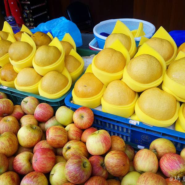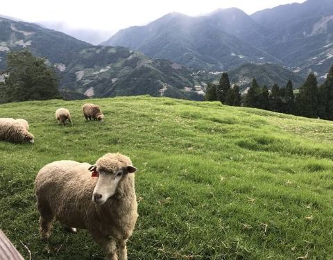 远处的山烟雾缭绕,像是山水画中的景色一样,其实也挺美的。因为海拔很高,青青草原的气温很低,穿夏装的我当时感觉冻死了。景区外的商店可以买到特产绵羊油、护手霜等物美价廉的护肤品。最后在等车的时候在水果摊买了一个超大的梨子,据说是当地的特产蜜梨,然鹅味道和平常吃的梨真的差不多。清境农场短暂的一天之旅结束了。前一天晚上临时找的司机师傅按时来接了我们去往花莲。