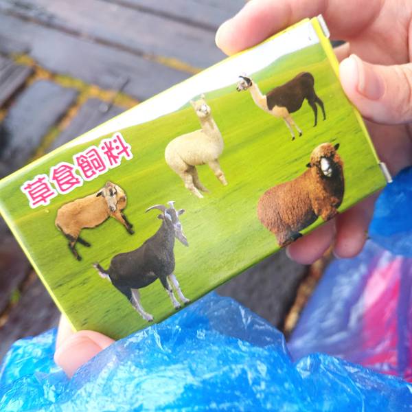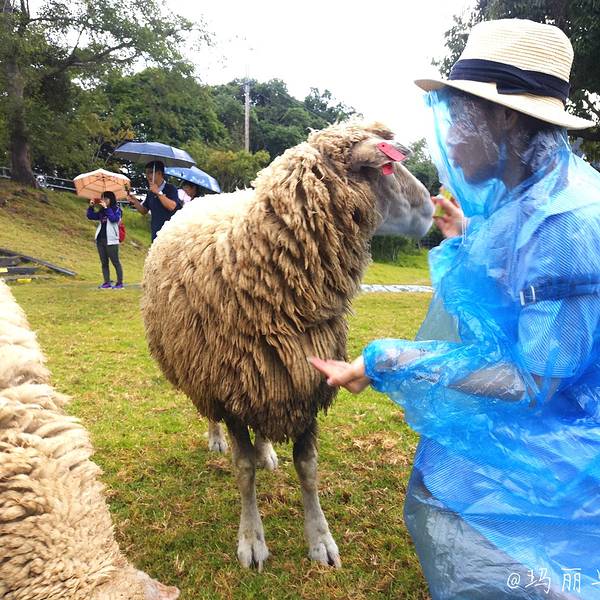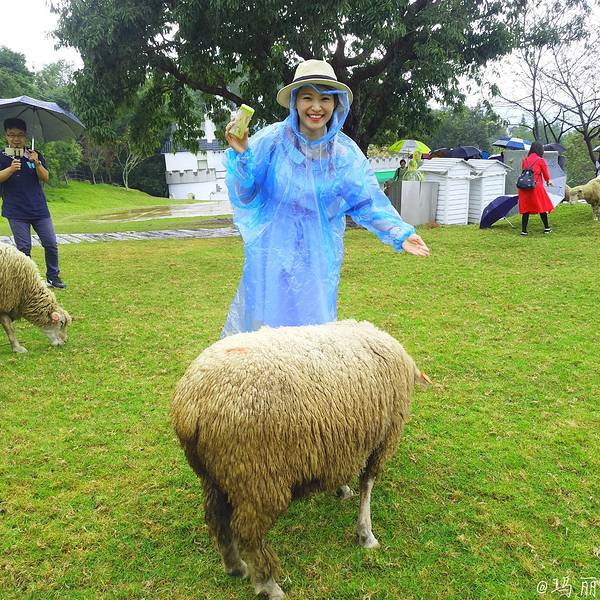 八点从民宿出来,天就开始下起淅淅沥沥的小雨,温度也随之骤降。原本计划的在艳阳中和羊咩咩们在草原上晒太阳,变成了在雨中披着难看的雨衣和羊咩咩艰难地合影。再哭~为了和小羊们拍照,买了一包羊饲料。阴雨中的青青草原。小羊们身上淋了雨,有点脏脏的,不过还是很可爱。羊饲料非常管用,只要拿出来,周围的羊就会蜂拥而至。雨中喂羊既然天公不作美,那么就坦然接受这个坏天气吧!
