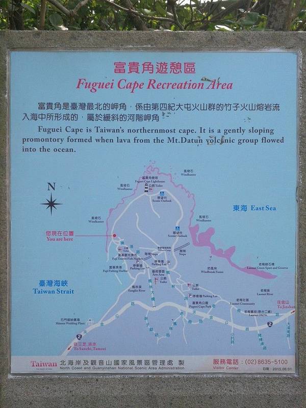 这个地方人很少,在停车场停车的时候只有四台车,走进去的时候也只遇到不超过30个人,相比野柳的人山人海,真是太清净了。停好车,到灯塔的位置,...吃完饭继续往北走,不到半个小时就到了台湾最北点-富贵角灯塔。