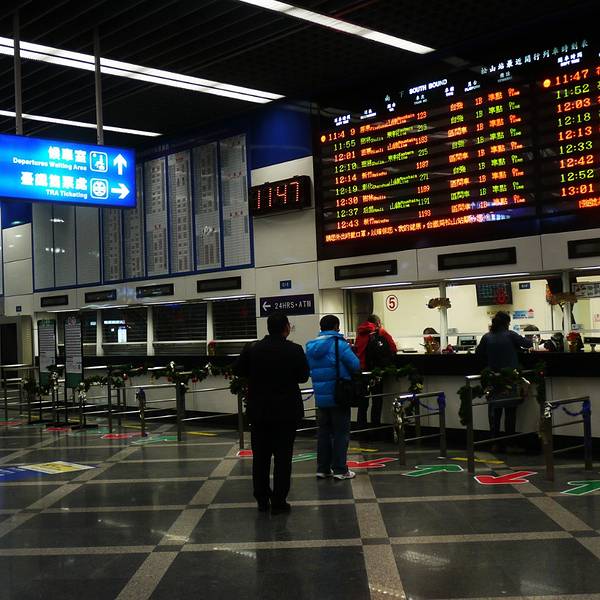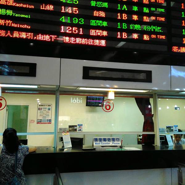 车站设施: 车站1F里面有很多的快餐店(McDonald, KFC, Mos Burger) 还有24H的便利店(7-11, Familiy Mart, Hi-Life) 还有很多的小商店卖衣服的, 装饰品的, 可以说是应有劲有, B1F 主要是售票大厅, 这里有人工售票, 还有机器售票, 一般的话, 在台湾坐火车不需要提前买, 因为人少班次多, 所以基本上随时都有票, 而且服务人员的态度都很好。检票口只有2个, 只需要上车前看好是哪个站台跟班次上车就好了