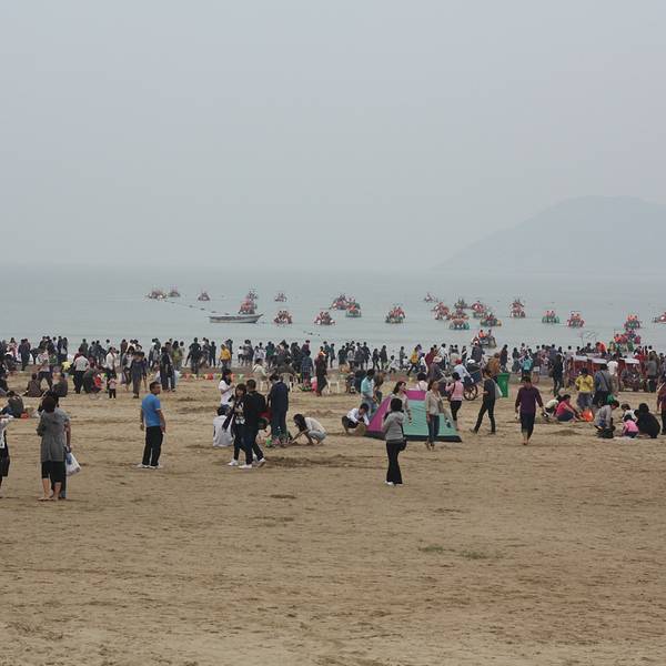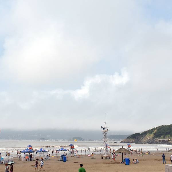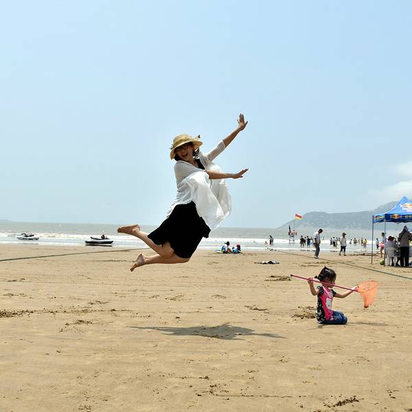 朱家尖南沙景区是“十里金沙”奇观的中心和精华所在,介于与千沙之间,长1000余米,宽约250米,沙质细腻,滩前海域辽阔,近岸1000米水域,水深在0.5米—2米之间。夏季海水洁净,透明度高,水温在24—26℃之间,是游客朋友沙滩休闲、踏浪嬉水和开展各种海上沙滩活动的理想场所,南沙滩前的这个海域可容纳2万人同浴,是我国少有的理想的大型海滨浴场。 炎炎夏日,游客们嬉水踏浪。驾着摩托艇在碧波中风驰电掣,在沙滩上放飞青春的梦想,紧张的现代生活节奏之余,这里就是您理想的休闲度假之选,它可以让您充实、更让您回味无穷。这里也是全国仅有的能够提供夜泳安全保障的天然海滨浴场。